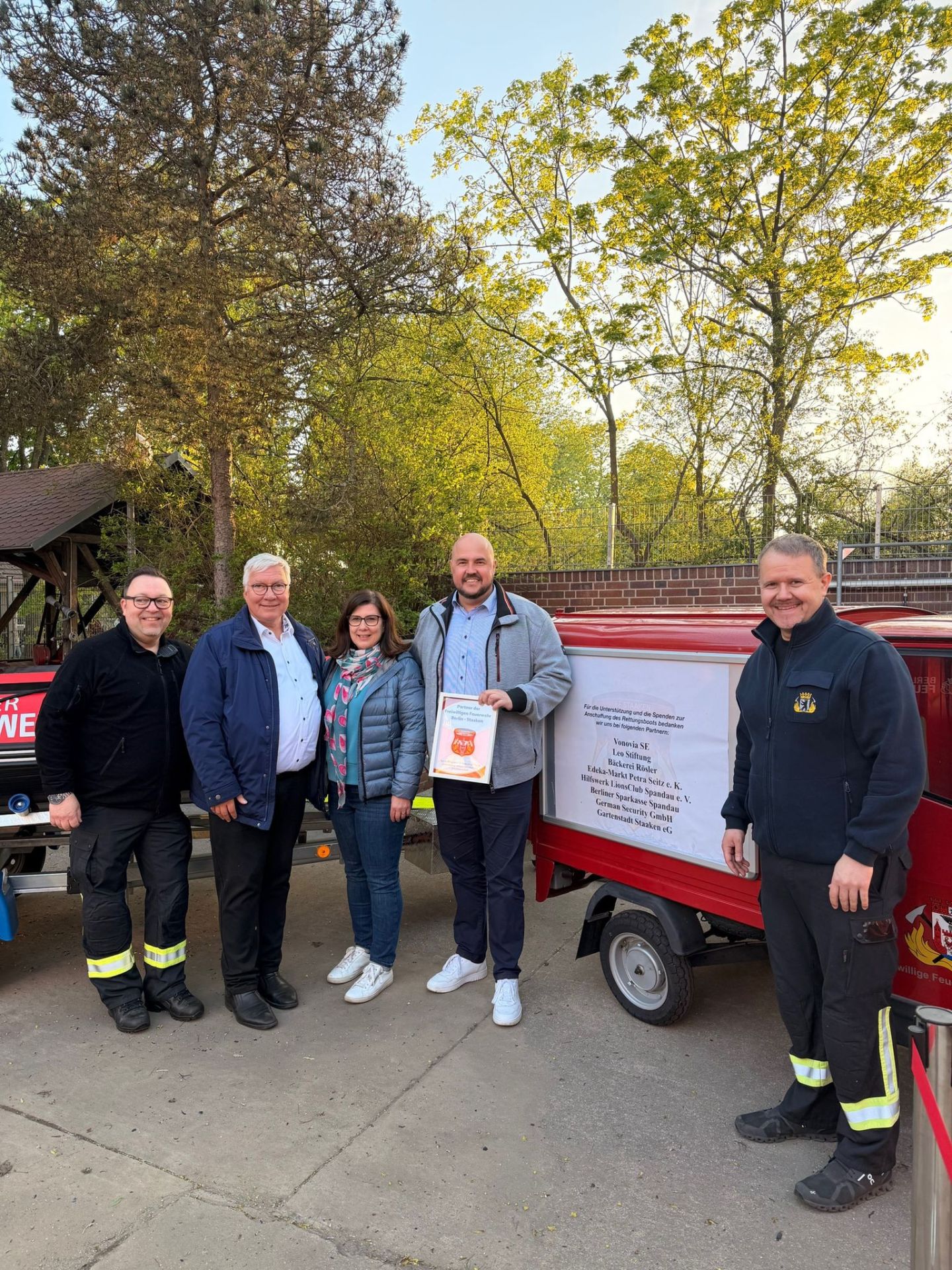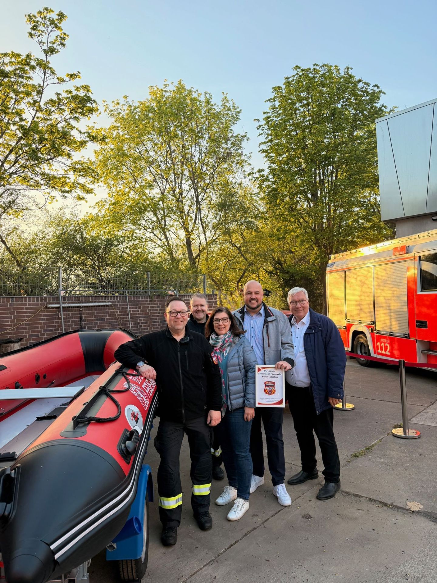 Am 25.04.2026 fand bei der Freiwilligen Feuerwehr Staaken das traditionelle Kontaktfeuer statt. Im Rahmen der Veranstaltung wurde zudem ein neues Rettungsboot feierlich übergeben, das dank der großzügigen Unterstützung zahlreicher Spender angeschafft werden konnte.